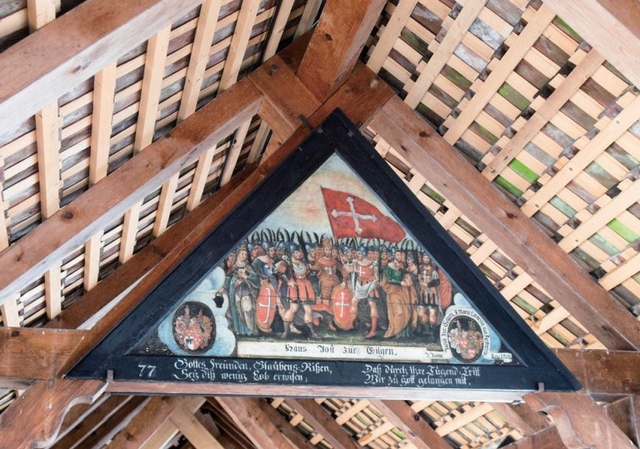 다리지붕에는 스위스의 중요한 역사적 사건과 루체른 수호성인들의 생애가 판화로 새겨져 있다.